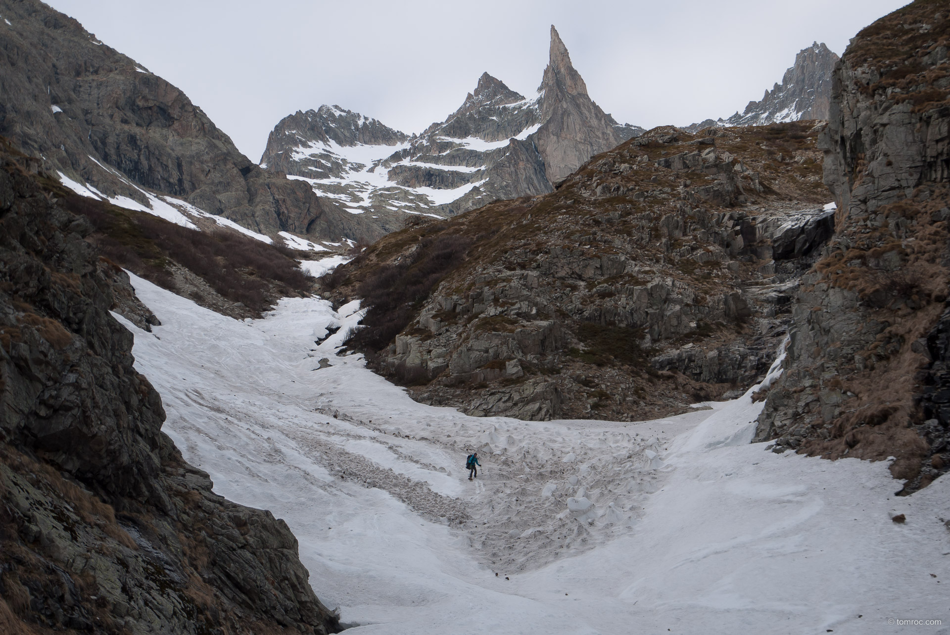 L’aiguille Dibona est un spot d’escalade très prisé dans le massif de l’Oisans. Elle a vraiment de la gueule cette montagne ! Mais au mois d’avril ? Camptocamp.org le confirme, c’est une idée originale: sur 575 sorties référencées, aucune au mois d’avril !