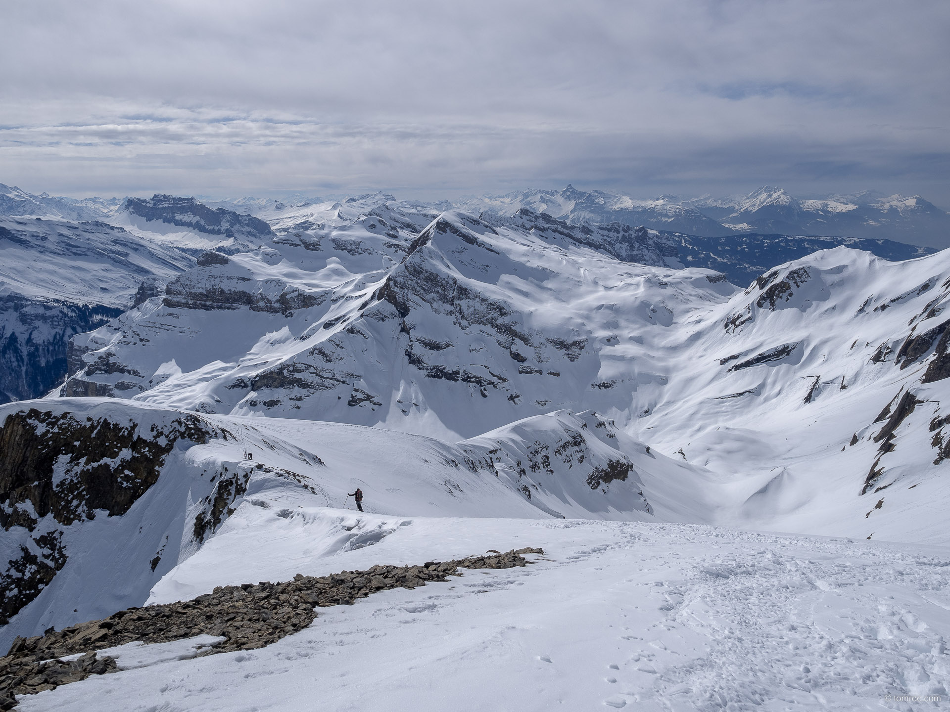 Mais la plupart des groupes basculent dans la foulée dans la combe au Puaires, tandis qu’après une belle descente nous visons maintenant la Dent de Barme.